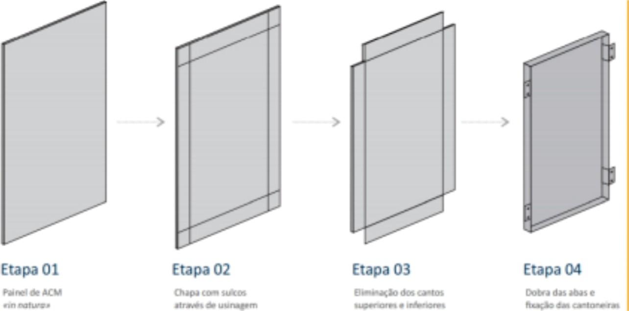 Devido a sua característica de plasticidade, o ACM pode ser cortado, dobrado e curvado c facilidade.