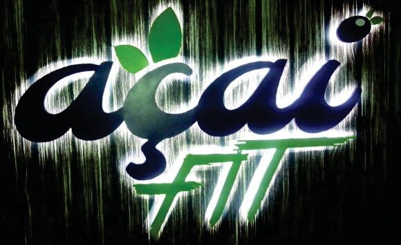A iluminação das letras em chapa galvanizada pode ser feita na parte oca inferior permitindo que ao acender fica uma fumaça da iluminação dando forma as letras.